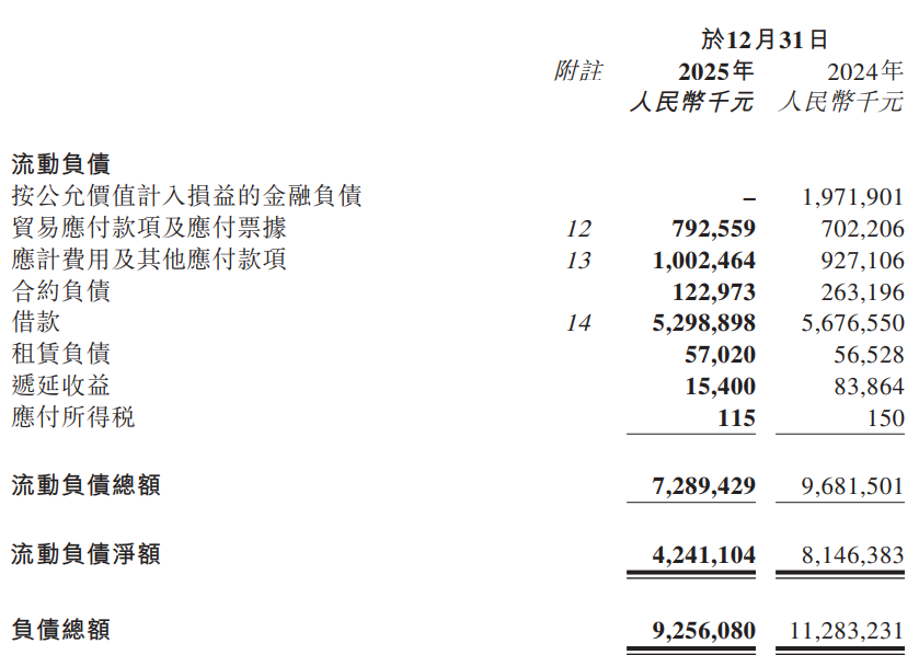 尽管功绩发达亮眼,但年报也显现,曹操出行仍然存在高欠债压力。适度2025年12月31日,适度2025年12月31日,公司有借债总和东说念主民币72.07亿元,公司自零丁买卖银行取得未动用银行信贷融资约东说念主民币55亿元。公司欠债总和达92.56亿元,流动欠债72.89亿元,流动欠债净额达42.41亿元。