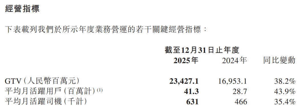 年报显现,2025年,曹操出行的业求完了隆重且顽强增长。公司的GTV由2024年的东说念主民币170亿元大幅增长38.2%至2025年的东说念主民币234亿元,公司的平均月活跃用户由2024年的28.7百万名增长43.9%,至2025年的41.3百万名,收入亦相应由2024年的东说念主民币147亿元增长37.7%至2025年的东说念主民币202亿元。该增长主要归因于公司在现存城市的精湛化运营,通过公司的定制车提供相对圭臬化且高质地的处事,从而提高市集份额。